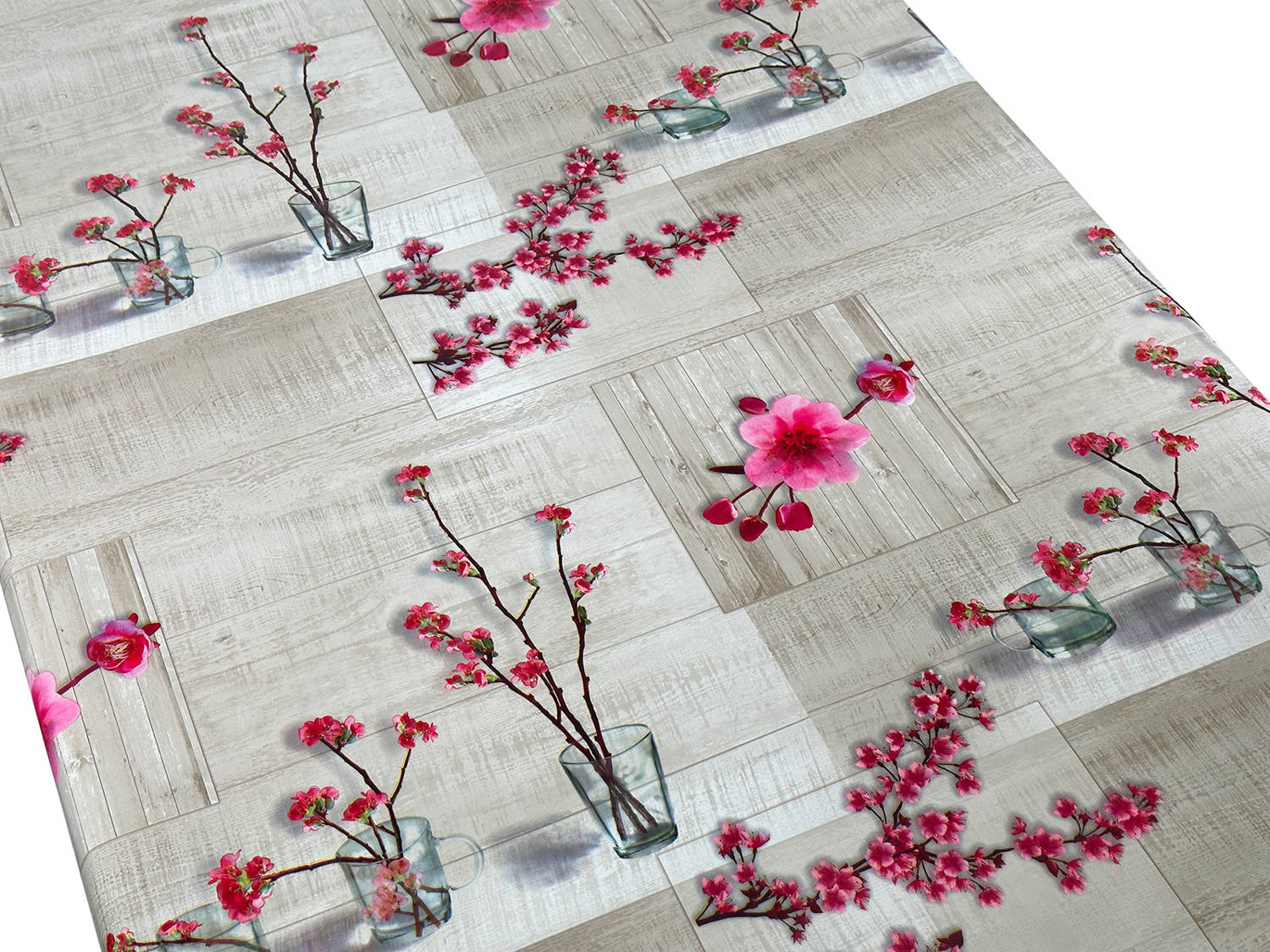 PVC ubrusy s textilním podkladem– stolové voskované plátno na textilnom podklade v závitoch šírky 140 cm, dĺžky 20 m. Zloženie: potlačená fólia 100% PVC na podklade zo 100% PP tkaniny. Oeko-Tex Standard 100.