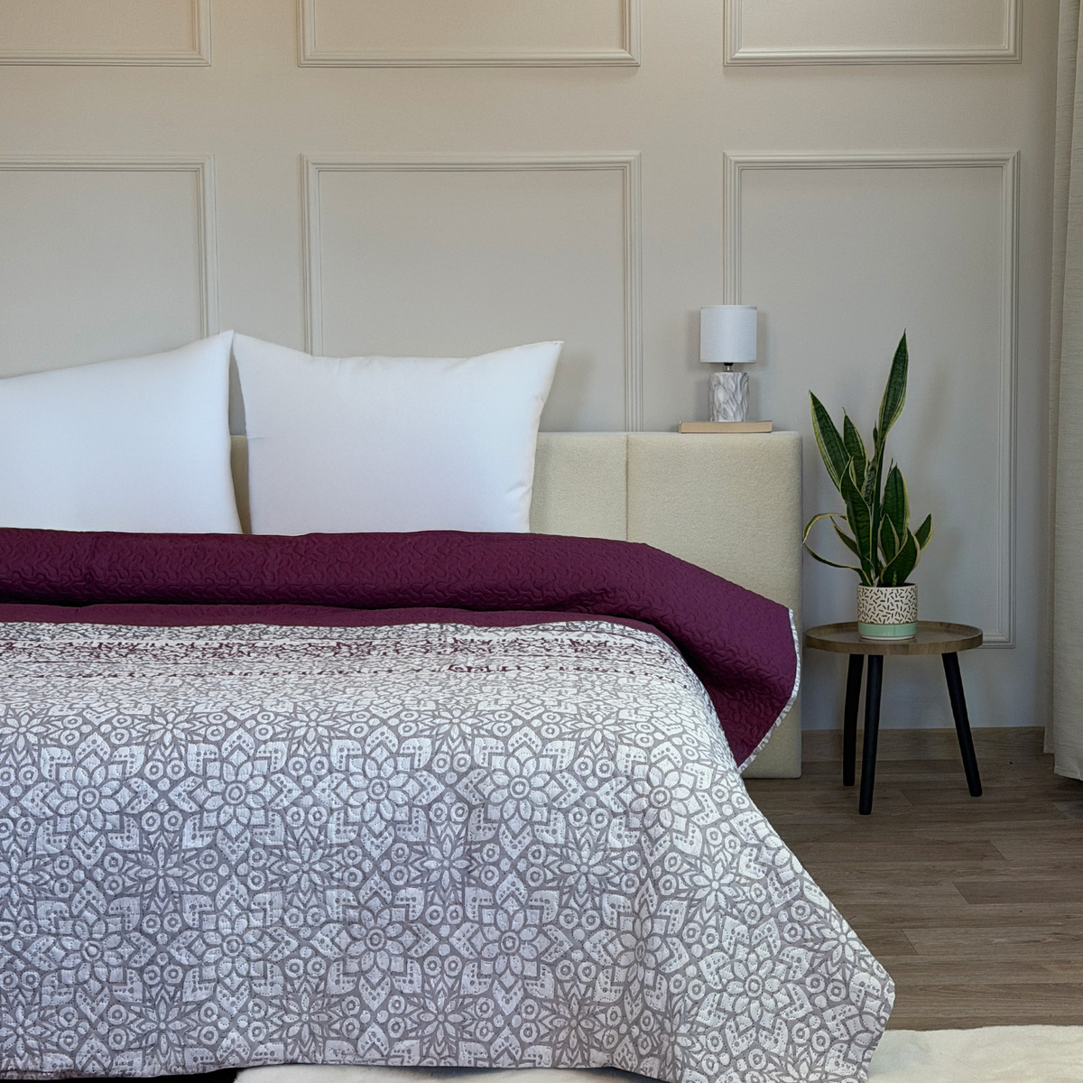 Elegantné obojstranné prikrývky na posteľ a sedačku. Kompozícia atraktívnych farieb sa bude hodiť ku každému zariadeniu spálne či chodby. Každá prikrývka s atraktívnym prešívaným vzorom má polyesterovú výplň. 100% matné polyesterové vlákno. Teplota prania 30 °C. .
