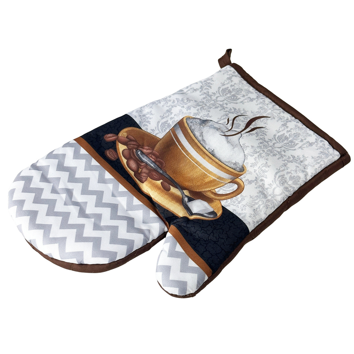 2 kuchynské rukavice s magnetom, pravá a ľavá. Materiál: 100% polyester. Veľkosť 16x27 cm. Teplota prania 30 °C.