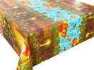 PVC ubrusy s textilním podkladem: stolové voskované plátno na textilnom podklade v závitoch šírky 140 cm, dĺžky 20 m. Zloženie: potlačená fólia 100% PVC na podklade zo 100% PP tkaniny. Oeko-Tex Standard 100. Krajina pôvodu: Turecko.