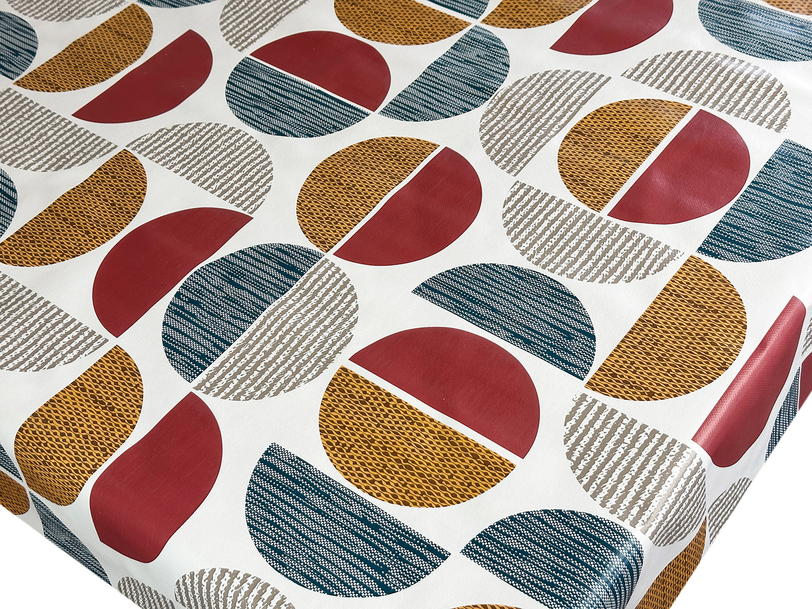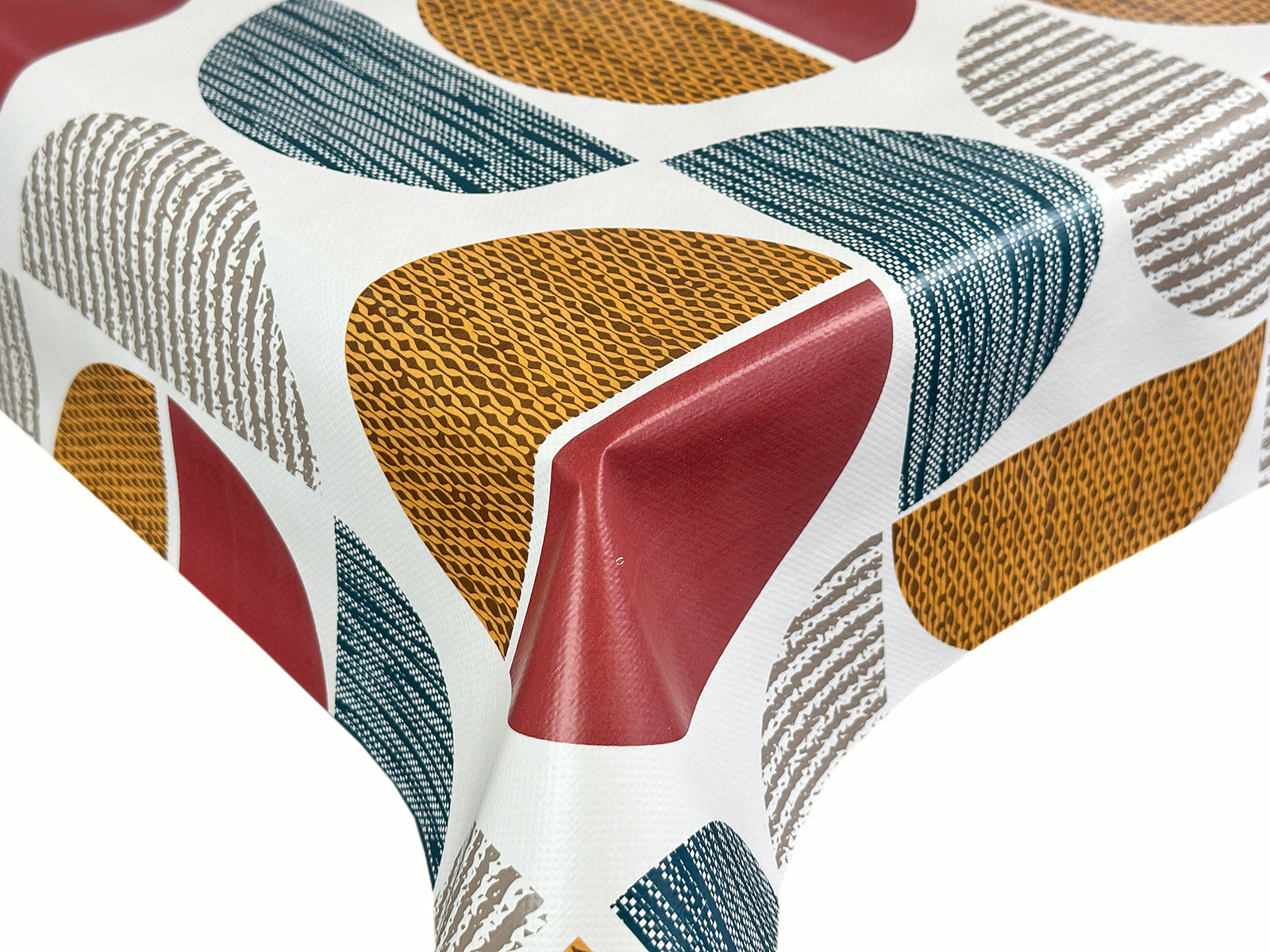 PVC ubrusy s textilním podkladem– stolové voskované plátno na textilnom podklade v závitoch šírky 140 cm, dĺžky 20 m. Zloženie: potlačená fólia 100% PVC na podklade zo 100% PP tkaniny. Oeko-Tex Standard 100.