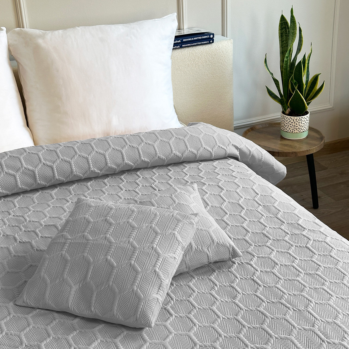 • Obojstranné Prehozy Parla 3D Svetlo šedá 220x240+2x40x40