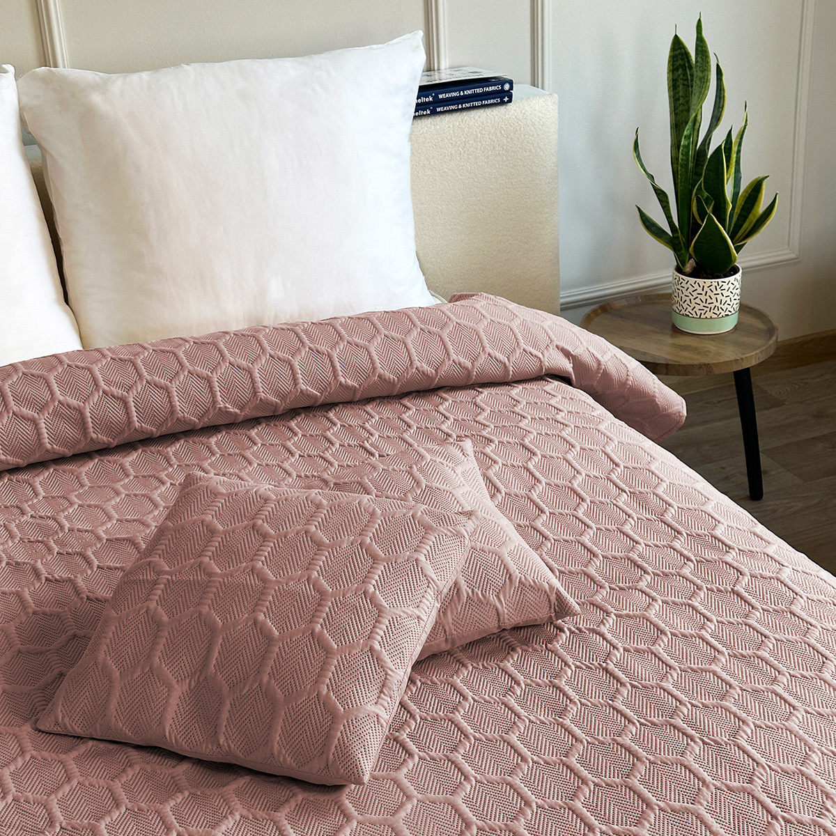• Obojstranné Prehozy Parla 3D Púdrovo Ružová 180x220+2x40x40