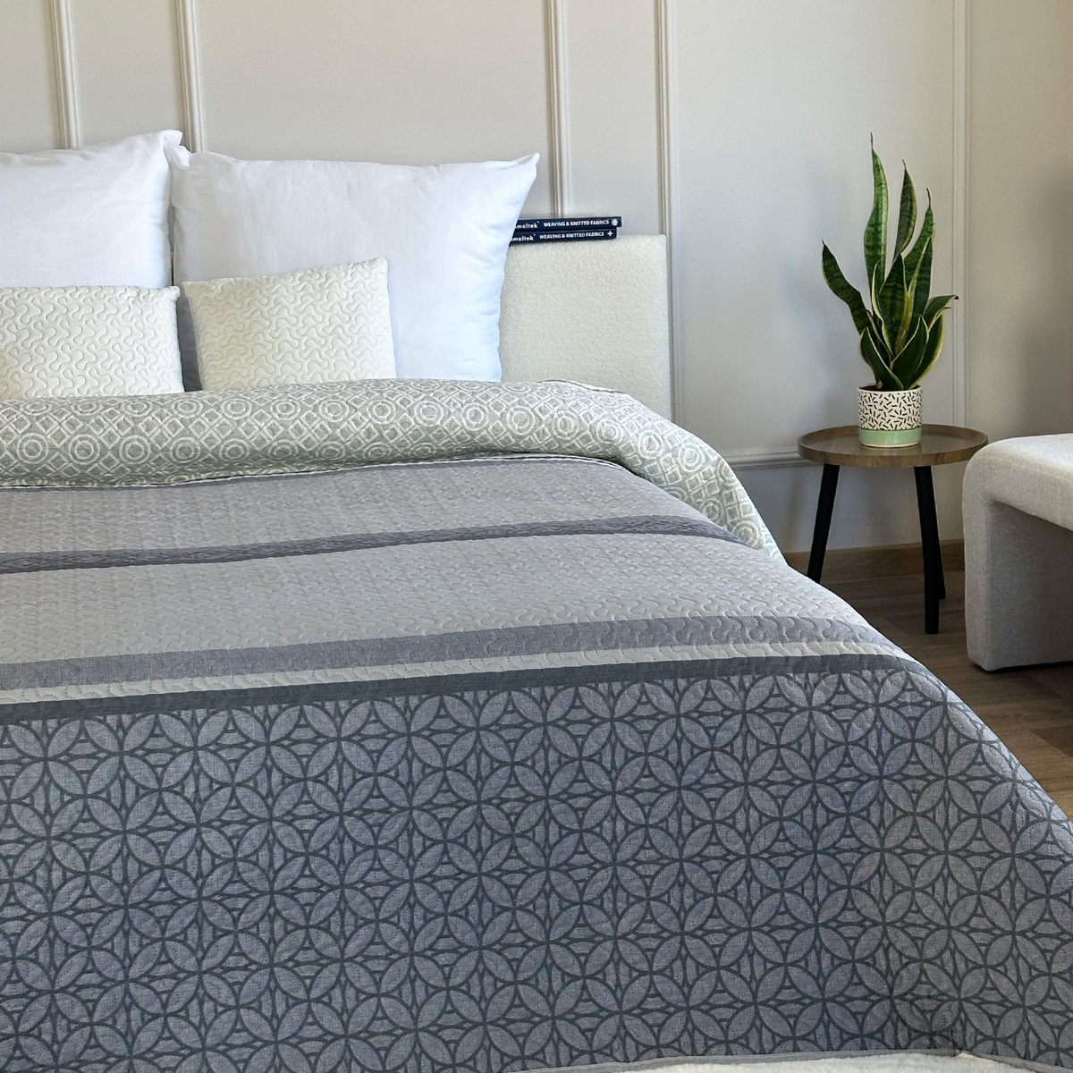 Elegantné prikrývky na posteľ a sedačku. Kompozícia atraktívnych farieb sa bude hodiť ku každému zariadeniu spálne či chodby. Každá prikrývka s atraktívnym prešívaným vzorom má polyesterovú výplň. 100% matné polyesterové vlákno. Teplota prania 30 °C. .