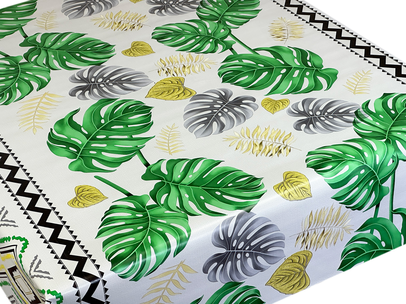 PVC ubrusy s textilním podkladem– stolové voskované plátno na textilnom podklade v závitoch šírky 140 cm, dĺžky 20 m. Zloženie: potlačená fólia 100% PVC na podklade zo 100% PP tkaniny. Oeko-Tex Standard 100.