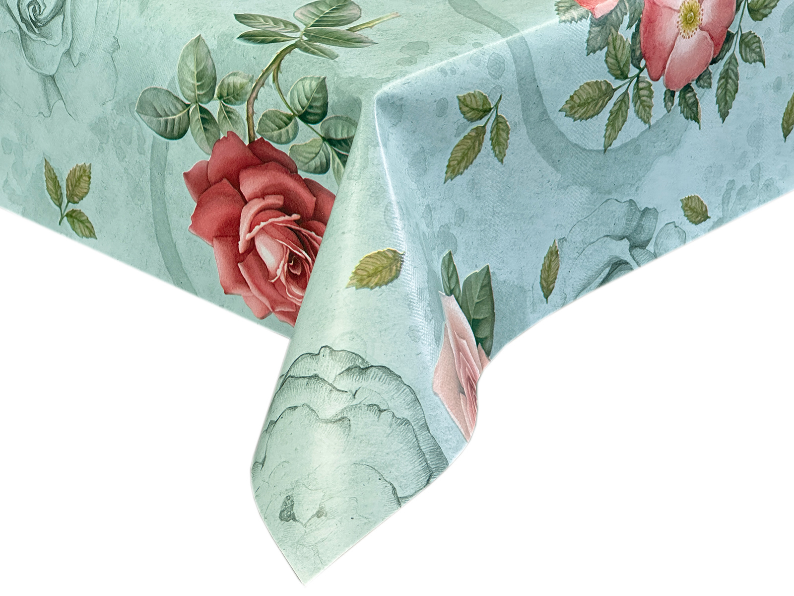 PVC ubrusy s textilním podkladem– stolové voskované plátno na textilnom podklade v závitoch šírky 140 cm, dĺžky 20 m. Zloženie: potlačená fólia 100% PVC na podklade zo 100% PP tkaniny. Oeko-Tex Standard 100.