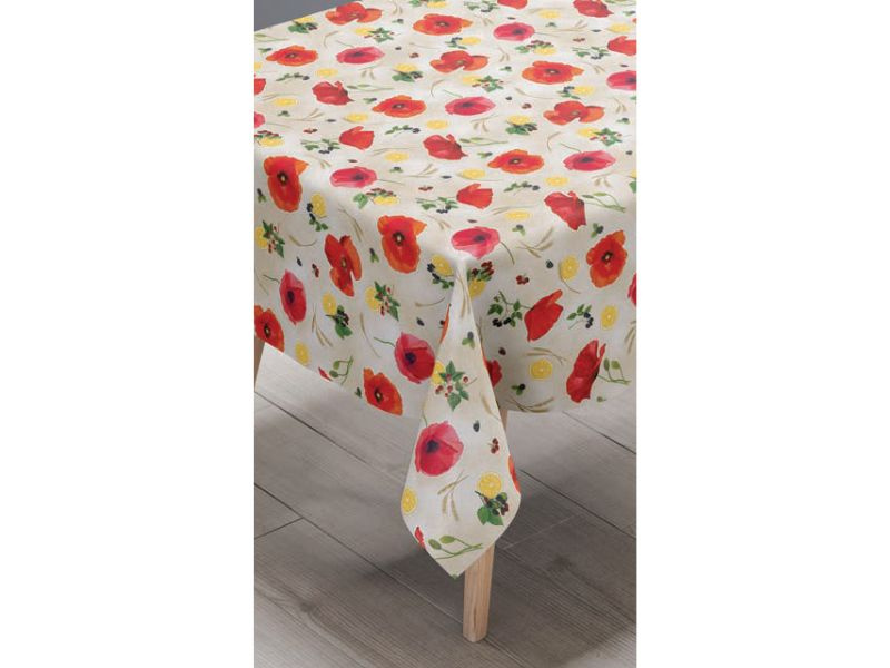 PVC ubrusy s textilním podkladem: stolové voskované plátno na textilnom podklade v závitoch šírky 140 cm, dĺžky 20 m. Zloženie: potlačená fólia 100% PVC na podklade zo 100% PP tkaniny. Krajina pôvodu: Turecko.