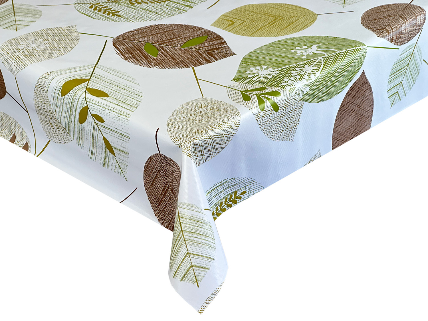 PVC ubrusy s textilním podkladem– stolové voskované plátno na textilnom podklade v závitoch šírky 140 cm, dĺžky 20 m. Zloženie: potlačená fólia 100% PVC na podklade zo 100% PP tkaniny. Oeko-Tex Standard 100.
