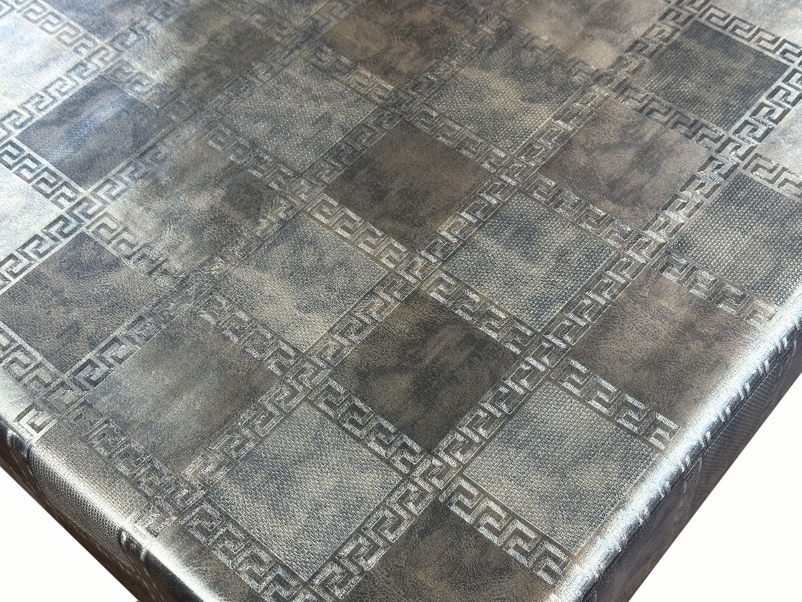 Metallico 3D. PVC ubrusy s textilním podkladem (3D design) – stolové voskované plátno na textilnom podklade (100% polyester) v závitoch šírky 140 cm, dĺžky 20 m. Zloženie: potlačená fólia 100% PVC na podklade zo 100% polyester tkaniny.