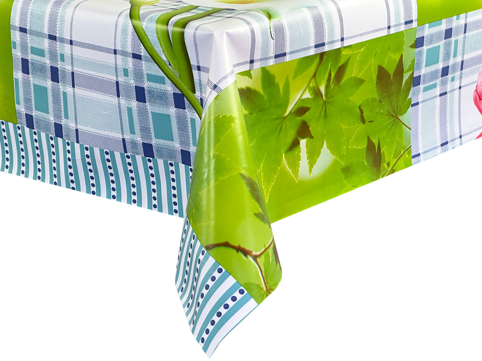 PVC ubrusy s textilním podkladem– stolové voskované plátno na textilnom podklade v závitoch šírky 140 cm, dĺžky 20 m. Zloženie: potlačená fólia 100% PVC na podklade zo 100% PP tkaniny. Oeko-Tex Standard 100.
