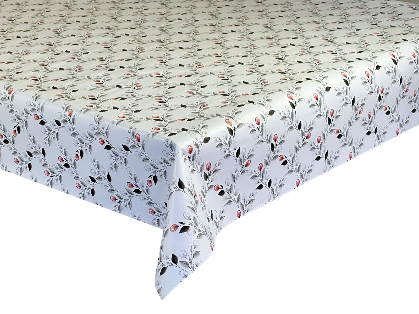 PVC ubrusy s textilním podkladem– stolové voskované plátno na textilnom podklade v závitoch šírky 140 cm, dĺžky 20 m. Zloženie: potlačená fólia 100% PVC na podklade zo 100% PP tkaniny. Oeko-Tex Standard 100.