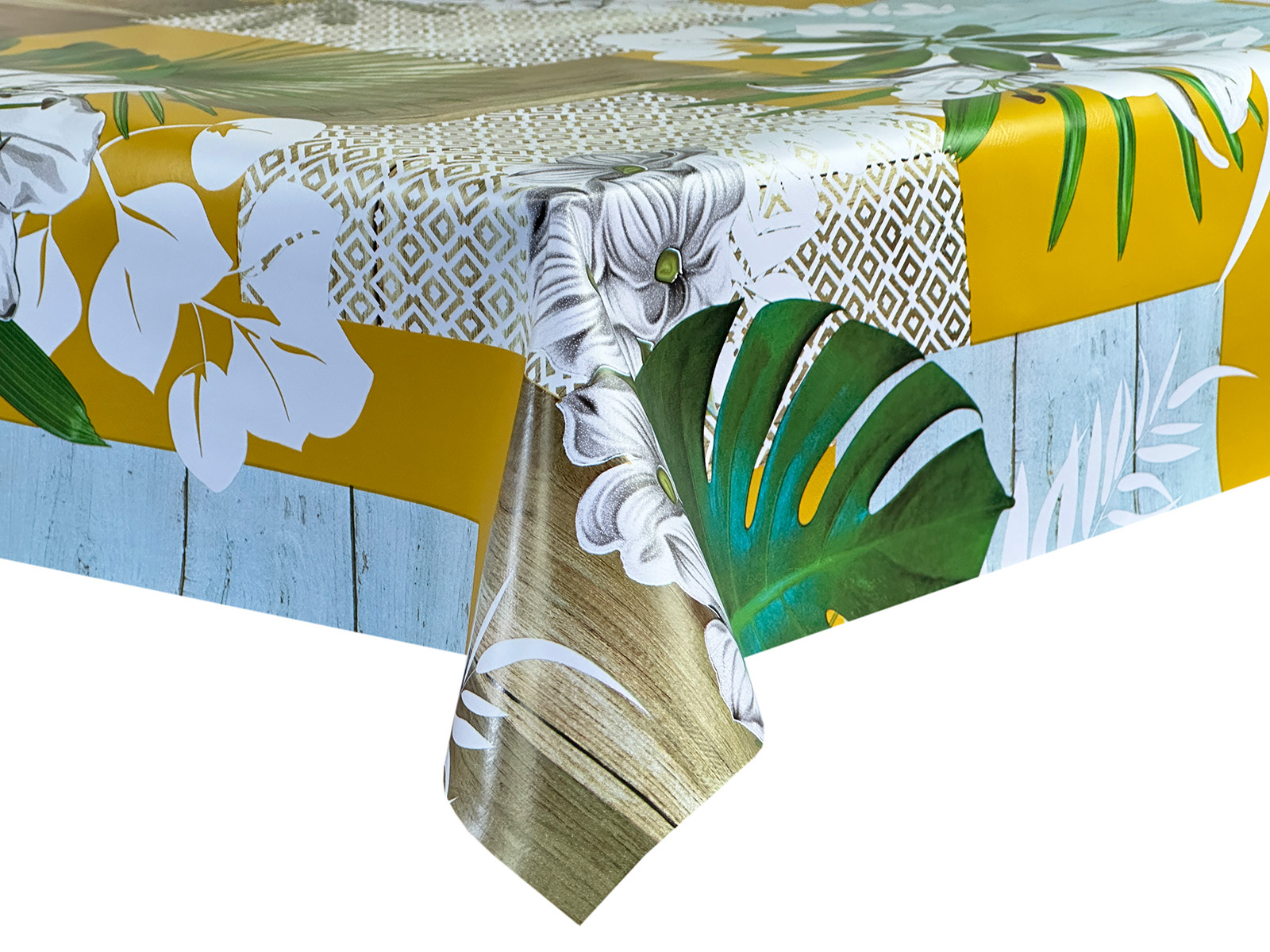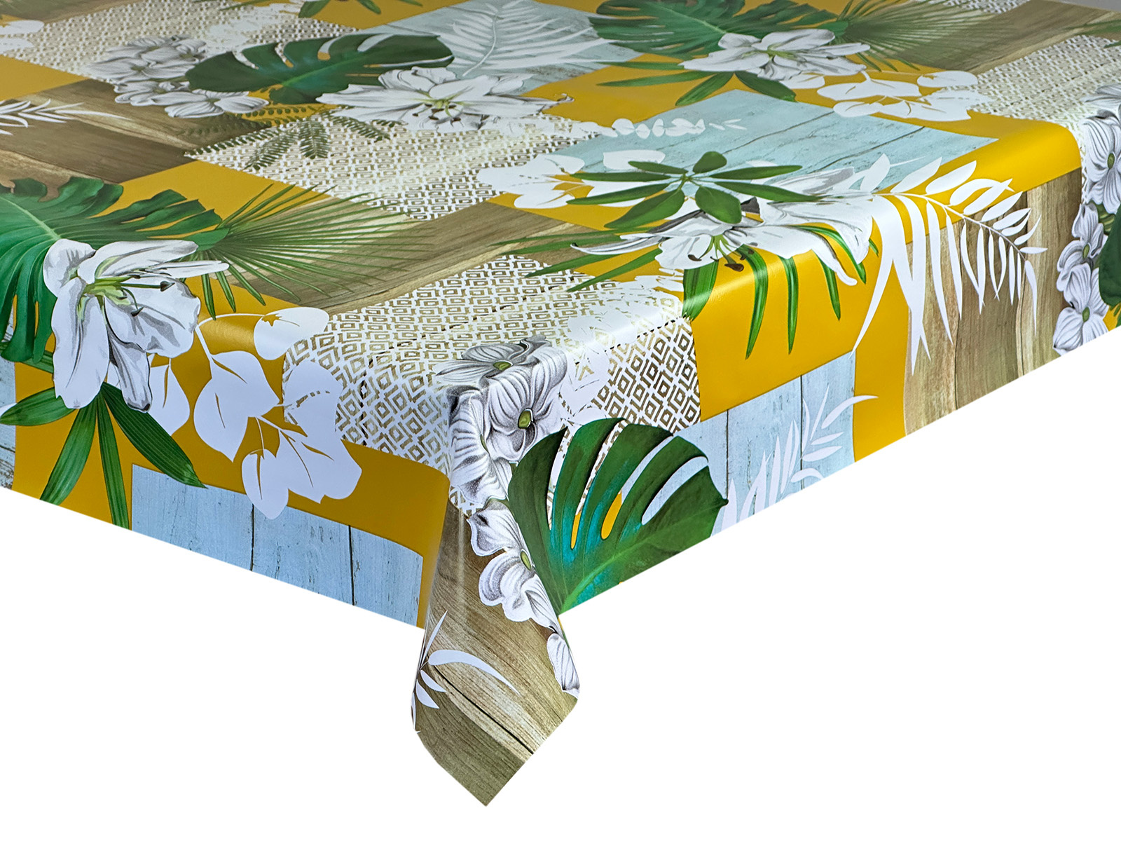 • PVC ubrusy s textilním podkladem– stolové voskované plátno na textilnom podklade v závitoch šírky 140 cm, dĺžky 20 m. Zloženie: potlačená fólia 100% PVC na podklade zo 100% PP tkaniny. Oeko-Tex Standard 100.