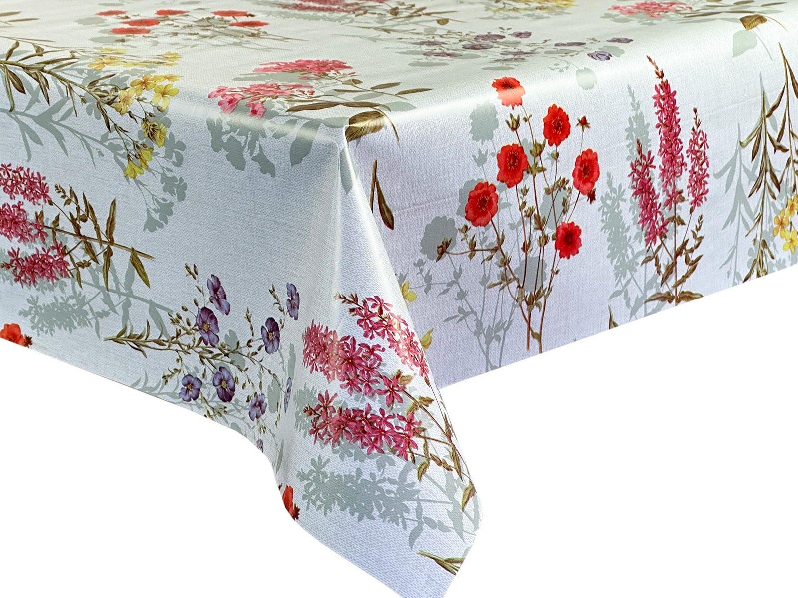 PVC ubrusy s textilním podkladem– stolové voskované plátno na textilnom podklade v závitoch šírky 140 cm, dĺžky 20 m. Zloženie: potlačená fólia 100% PVC na podklade zo 100% PP tkaniny. Oeko-Tex Standard 100.