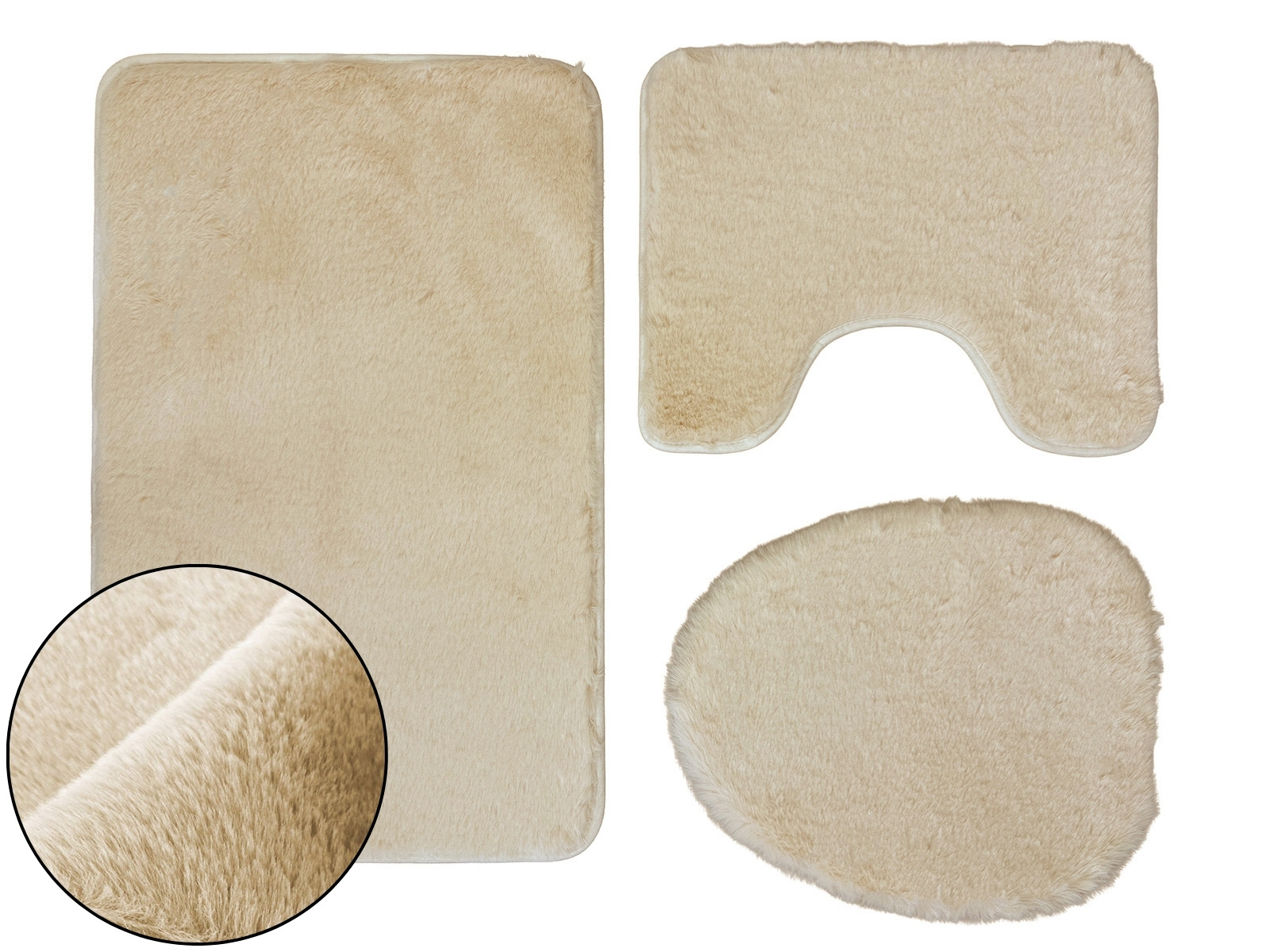 • 3-dielna sada: obsahuje 1× kúpeľňovú rohož, 1× WC predložku s výrezom a 1× poťah na WC sedadlo