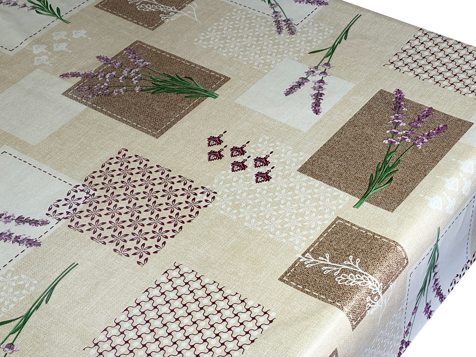 PVC ubrusy s textilním podkladem– stolové voskované plátno na textilnom podklade v závitoch šírky 140 cm, dĺžky 20 m. Zloženie: potlačená fólia 100% PVC na podklade zo 100% PP tkaniny.