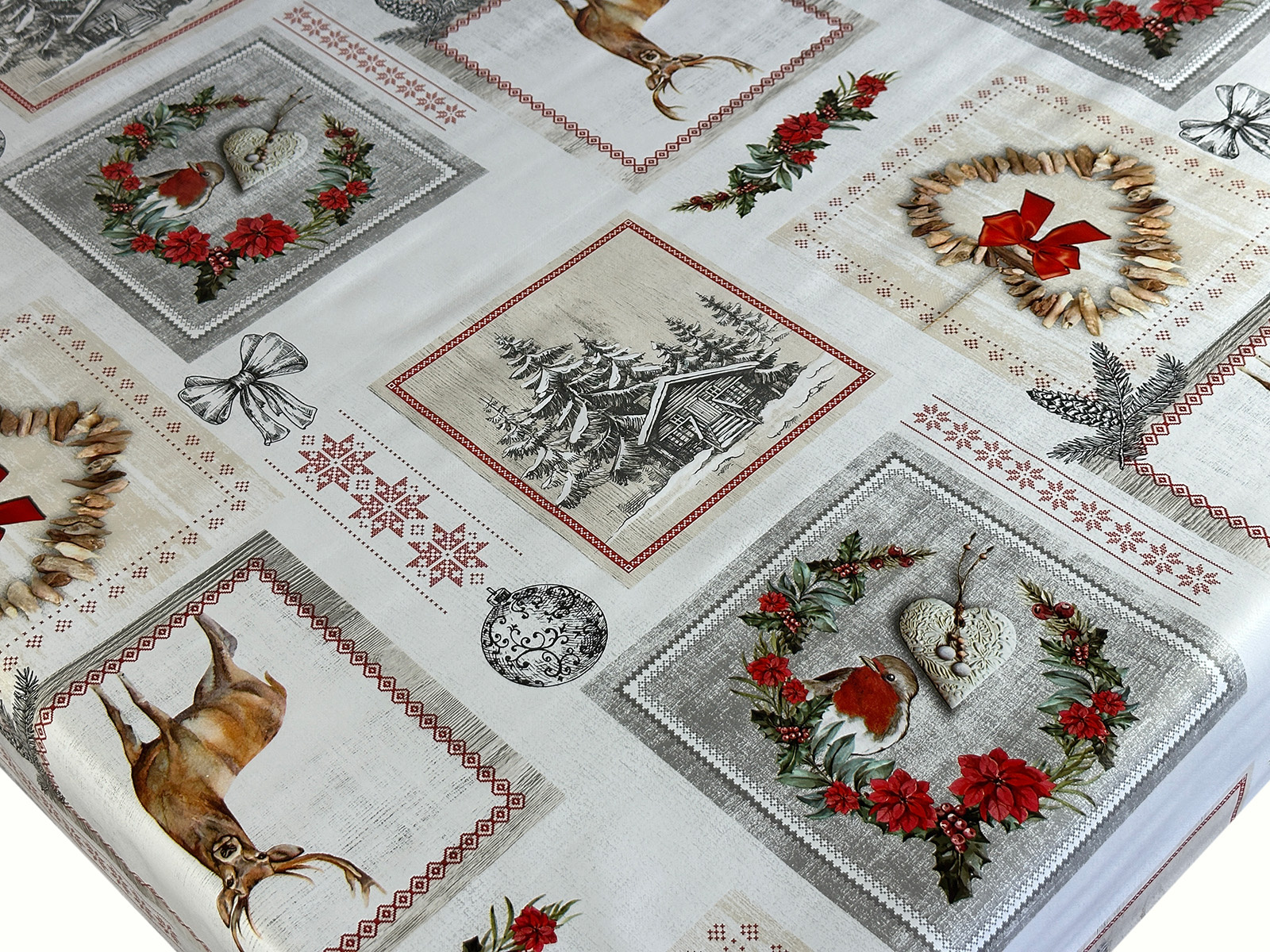 PVC ubrusy s textilním podkladem– stolové voskované plátno na textilnom podklade v závitoch šírky 140 cm, dĺžky 20 m. Zloženie: potlačená fólia 100% PVC na podklade zo 100% PP tkaniny.