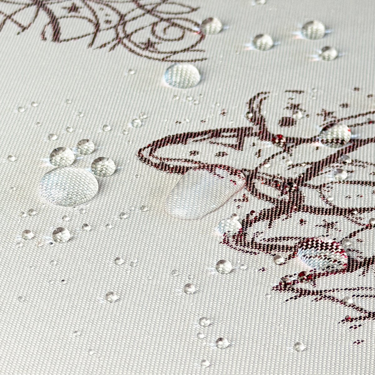 Obojstranné obrusy a behúne s nešpinivou úpravou. Praktické a pekné s povrchovou vrstvou odolnou proti škvrnám. Povrch zabraňuje pohlcovaniu kvapalín a chráni obrusy proti trvalému znečisteniu. Výnimočnou vlastnosťou obrusov s nešpinivou úpravou je ich odolnosť proti škvrnám. 100% polyester. Teplota prania 30°C. Gramáž 180 gsm. Oeko-Tex Standard 100.