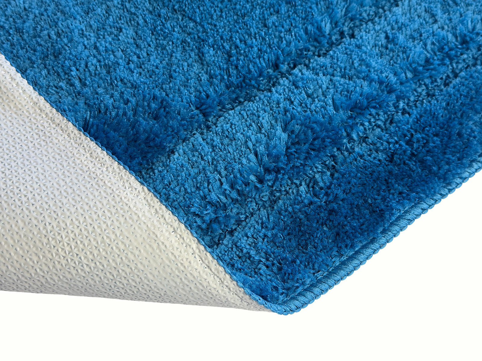 Jednofarebné koberce so žakárovým vzorom, vyrobené z mäkkého, dlhého polyesterového vlákna na protišmykovom latexovom dne. Teplota prania 30 stupňov C. 100% polyesterové mikrovlákno. Prispôsobené zaveseným toaletným misám. Teplota prania 30 stupňov C.