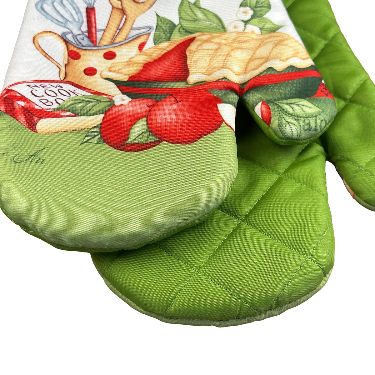 • 2 kuchynské rukavice s magnetom, pravá a ľavá. Materiál: 100% polyester. Veľkosť 18x27 cm. Teplota prania 30 °C.