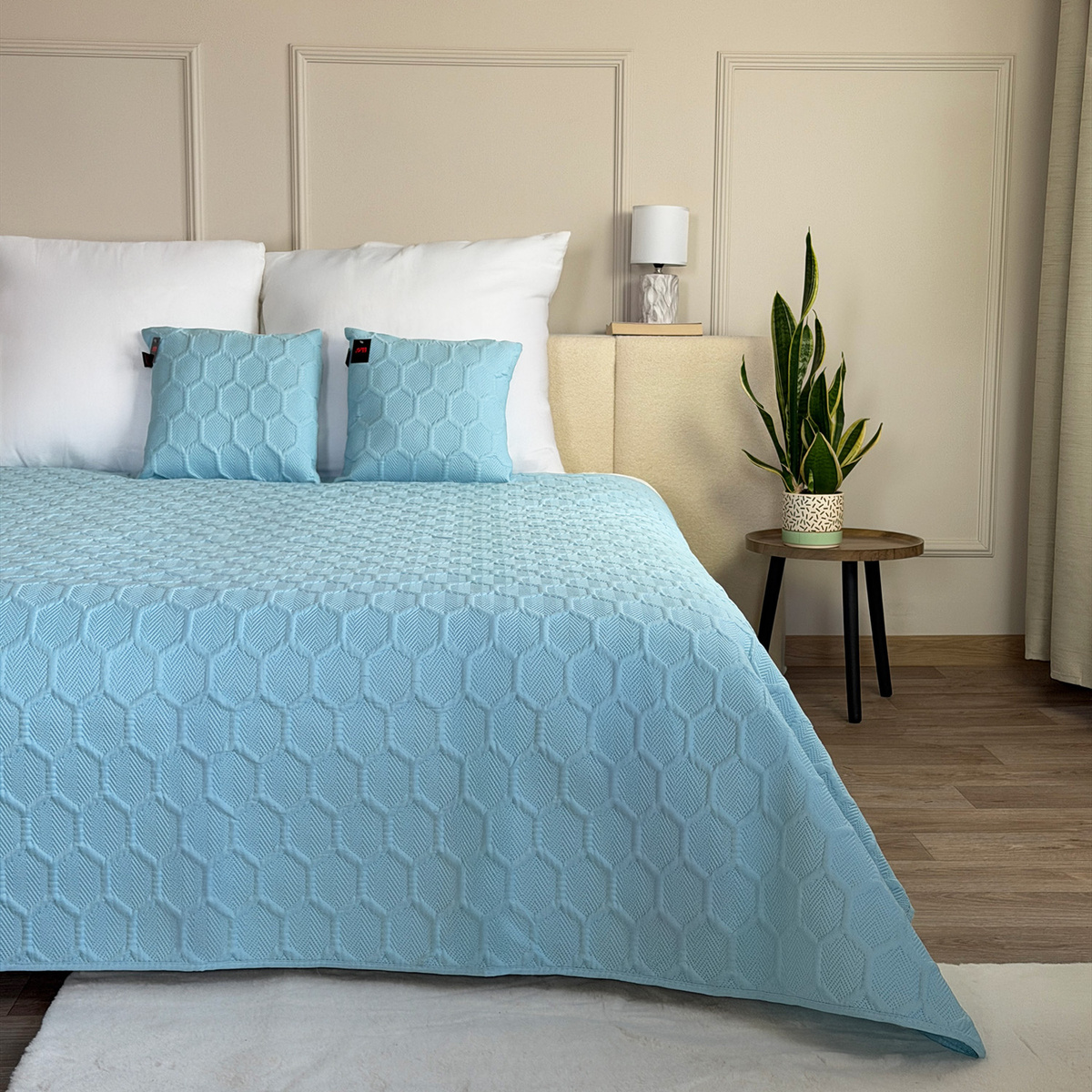 Elegantné obojstranné prikrývky na posteľ a sedačku. Kompozícia atraktívnych farieb sa bude hodiť ku každému zariadeniu spálne či chodby. Každá prikrývka s atraktívnym prešívaným vzorom má polyesterovú výplň. 100% matné polyesterové vlákno. Teplota prania 30 °C. .