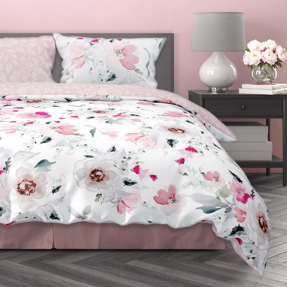 Sada posteľnej bielizne z bavlneného saténu. Sada obsahuje obliečku na perinu a dve obliečky na vankúše.