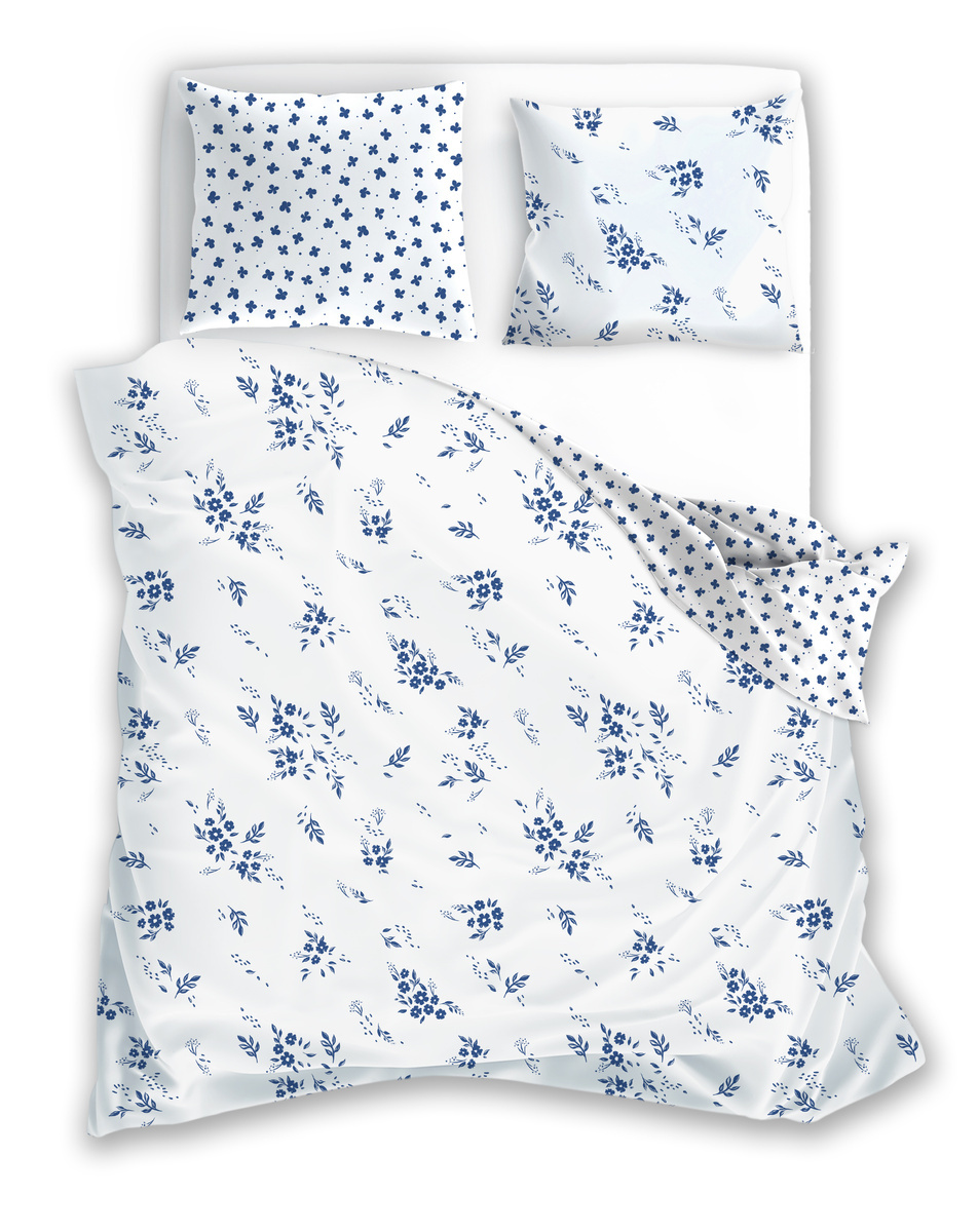 Sada posteľnej bielizne z bavlneného saténu. Sada obsahuje obliečku na perinu a dve obliečky na vankúše.