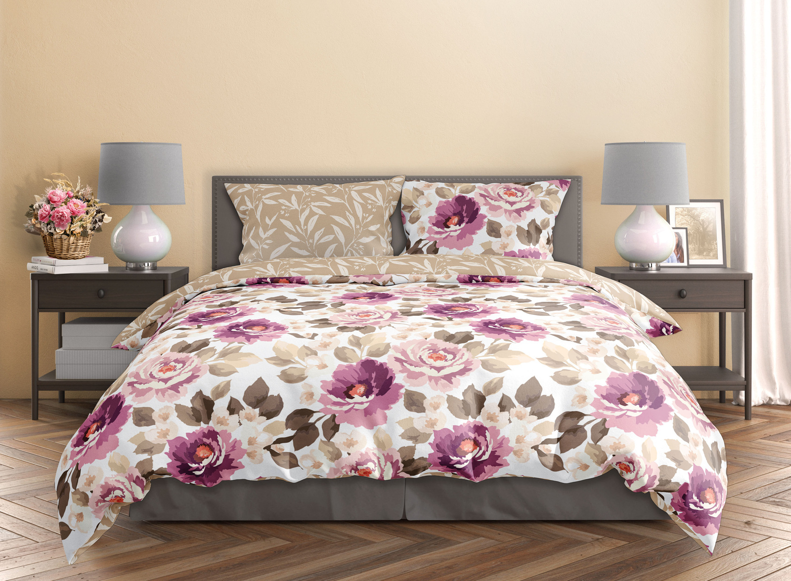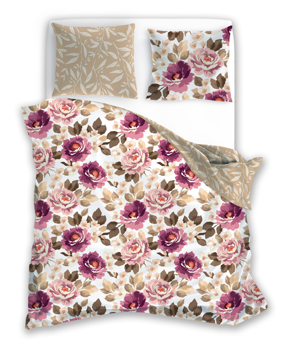 Sada posteľnej bielizne z bavlneného saténu. Sada obsahuje obliečku na perinu a dve obliečky na vankúše.