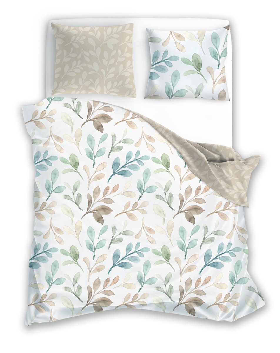 Sada posteľnej bielizne z bavlneného saténu. Sada obsahuje obliečku na perinu a dve obliečky na vankúše.