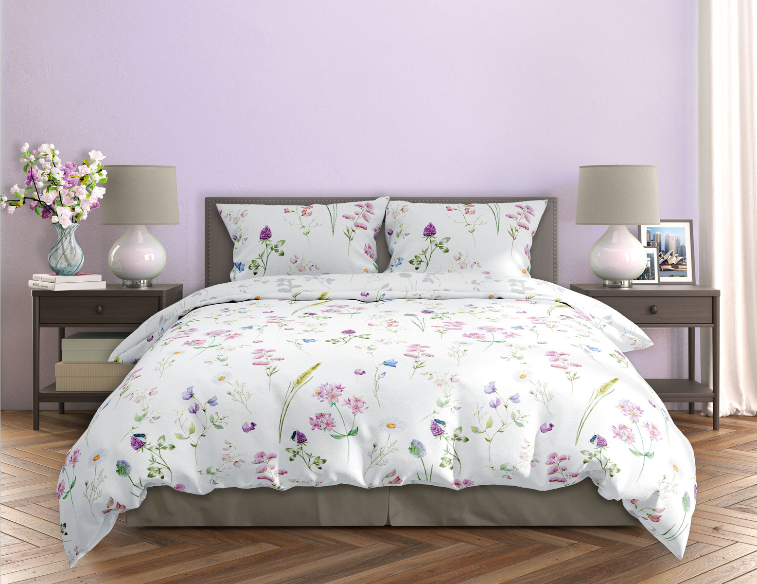 Sada posteľnej bielizne z bavlneného saténu. Sada obsahuje obliečku na perinu a dve obliečky na vankúše.