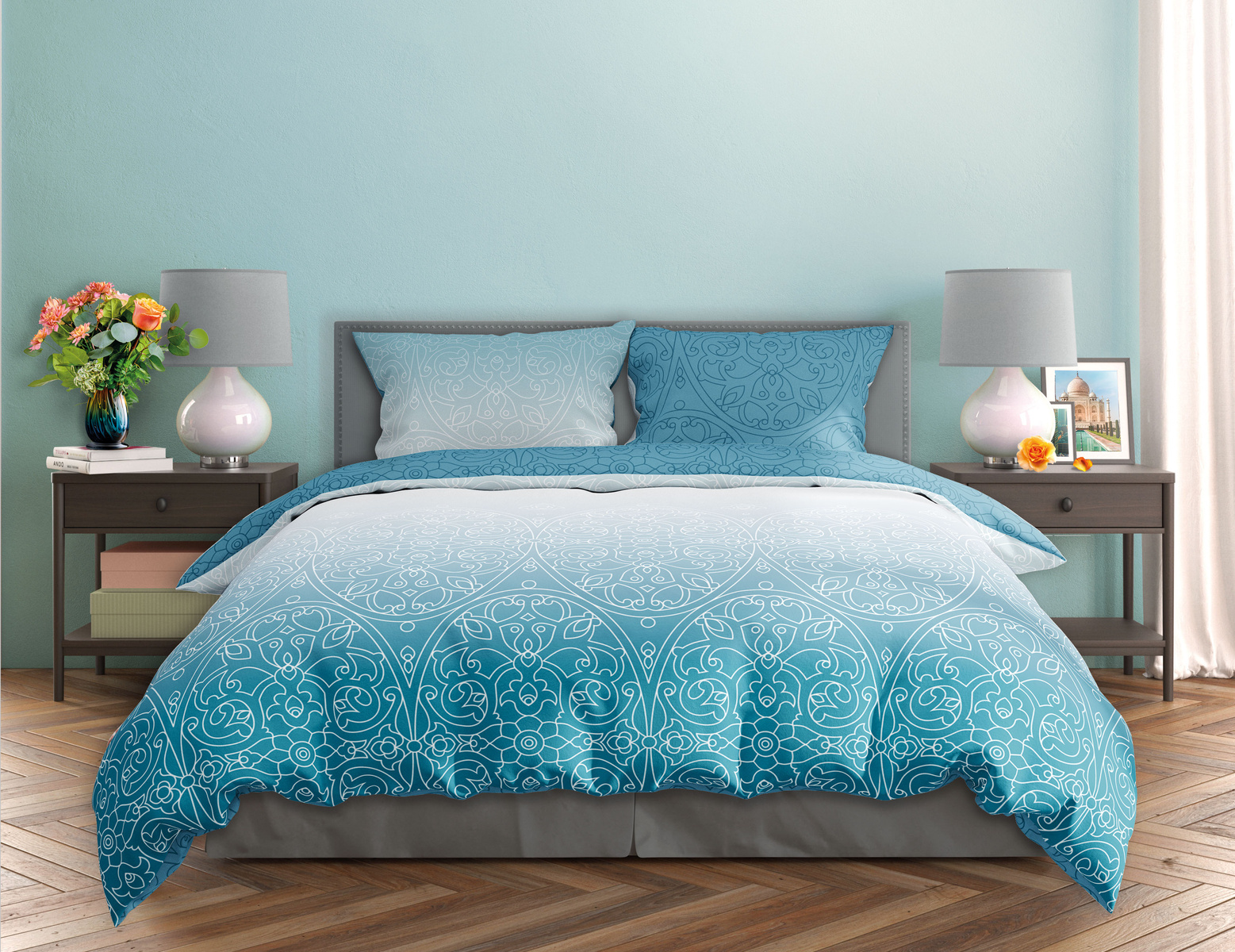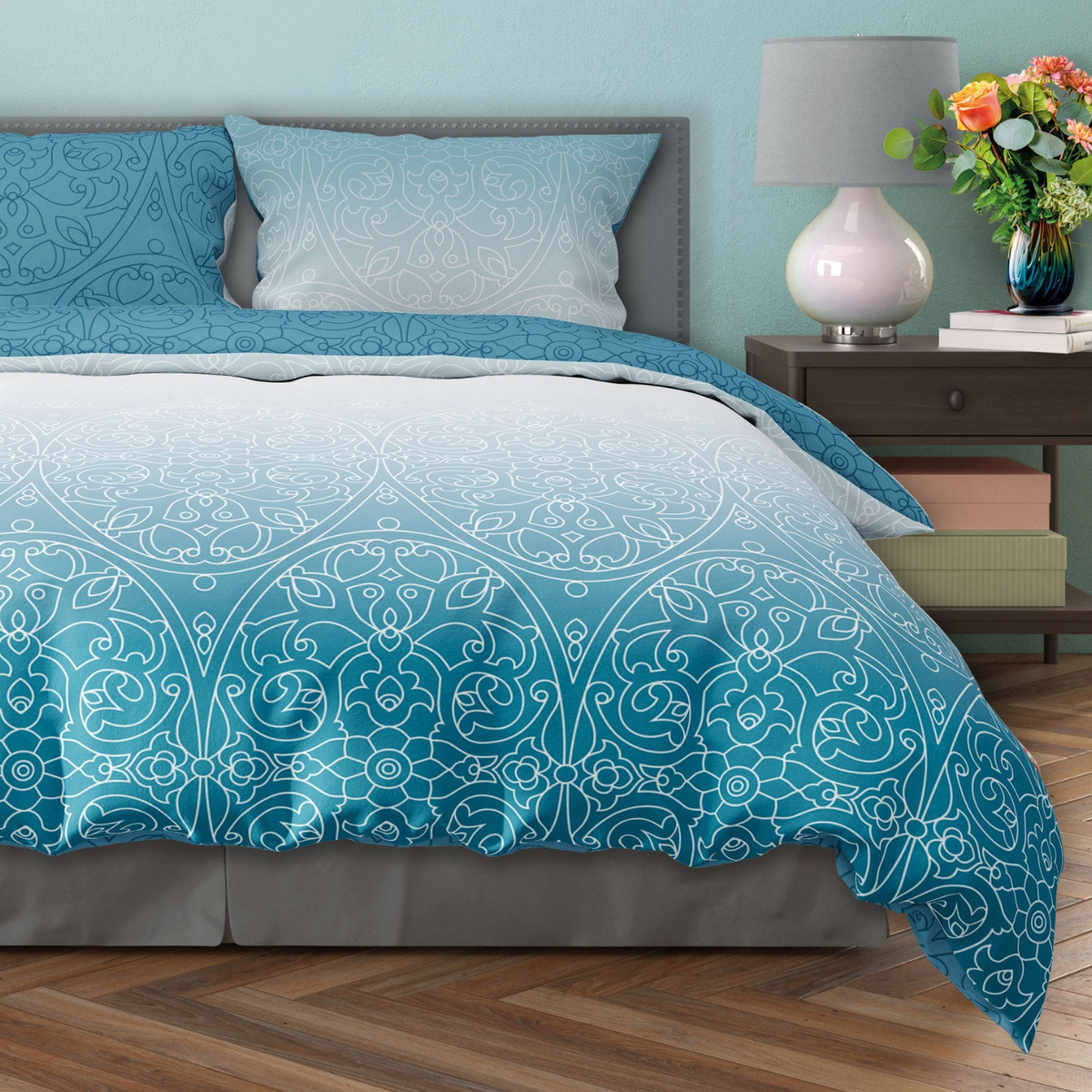 Sada posteľnej bielizne z bavlneného saténu. Sada obsahuje obliečku na perinu a dve obliečky na vankúše.