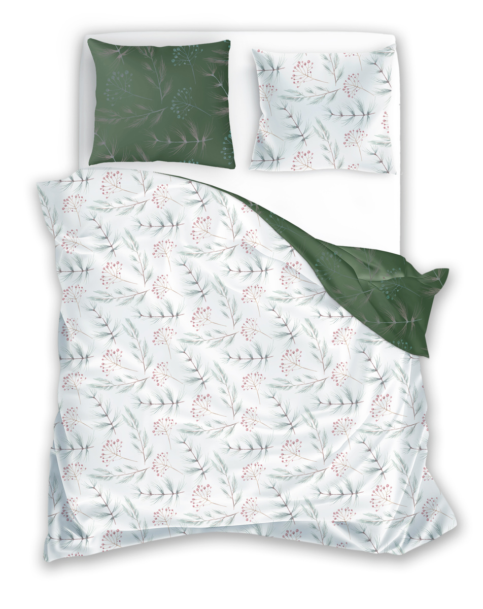 Sada posteľnej bielizne z bavlneného saténu. Sada obsahuje obliečku na perinu a dve obliečky na vankúše.