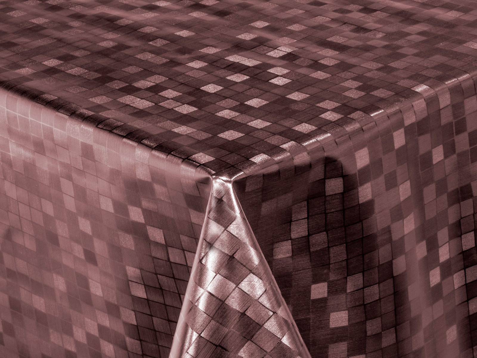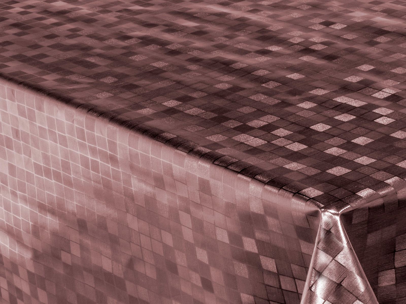Metallico 3D. PVC ubrusy s textilním podkladem (3D design) – stolové voskované plátno na textilnom podklade (100% polyester) v závitoch šírky 140 cm, dĺžky 20 m. Zloženie: potlačená fólia 100% PVC na podklade zo 100% polyester tkaniny.