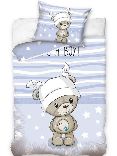 Detské bavlnené obliečky. Materiál: 100% bavlna. Súprava sa skladá z 1 obliečky a 1 obliečky na vankúš. Zapínanie na zip. Teplota prania 40°C. Oeko-Tex Standard 100.