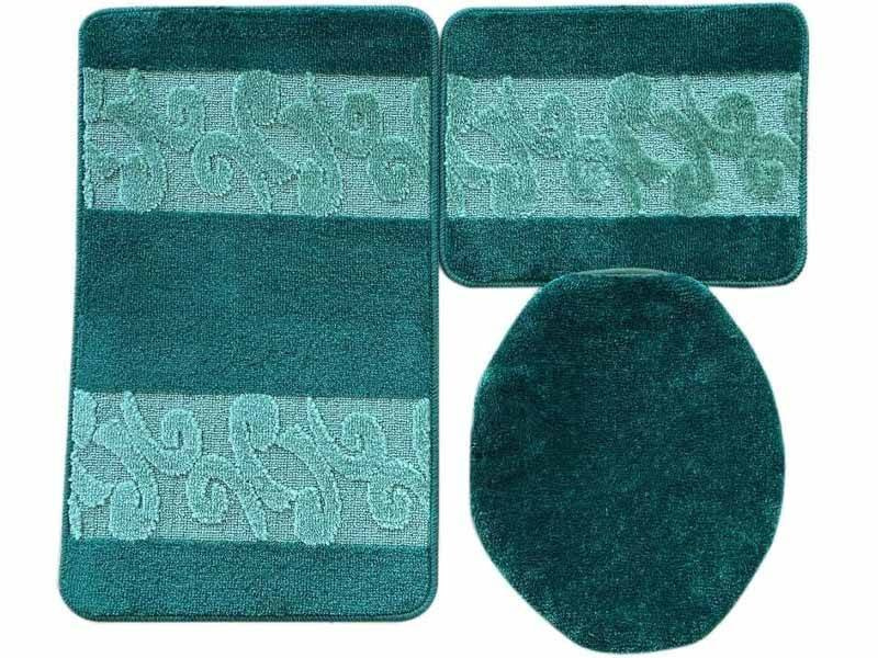 Kúpeľňové koberčeky: vyrobené z mäkkého dlhého (2 cm) polyestrového vlákna na protišmykovom podklade z latexu. Vhodné pre závesné WC. 100% polyester. Teplota prania 30°C.