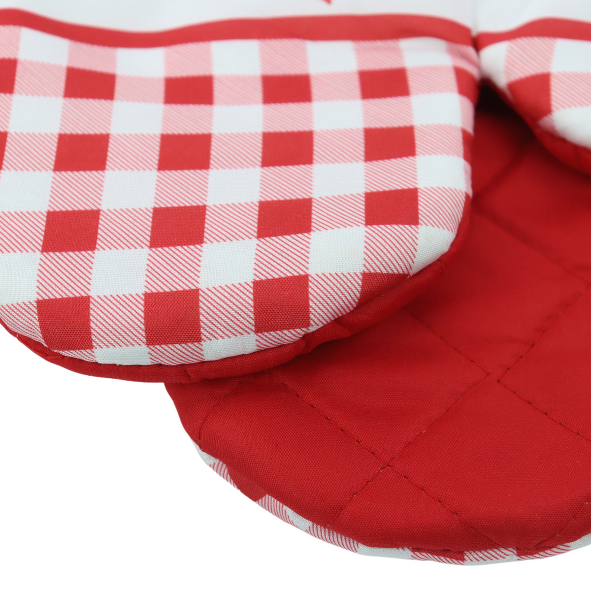 2 kuchynské rukavice s magnetom, pravá a ľavá. Materiál: 100% polyester. Veľkosť 16x27 cm. Teplota prania 30 °C.