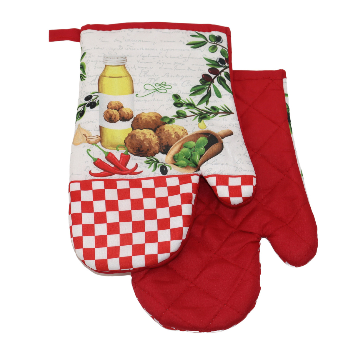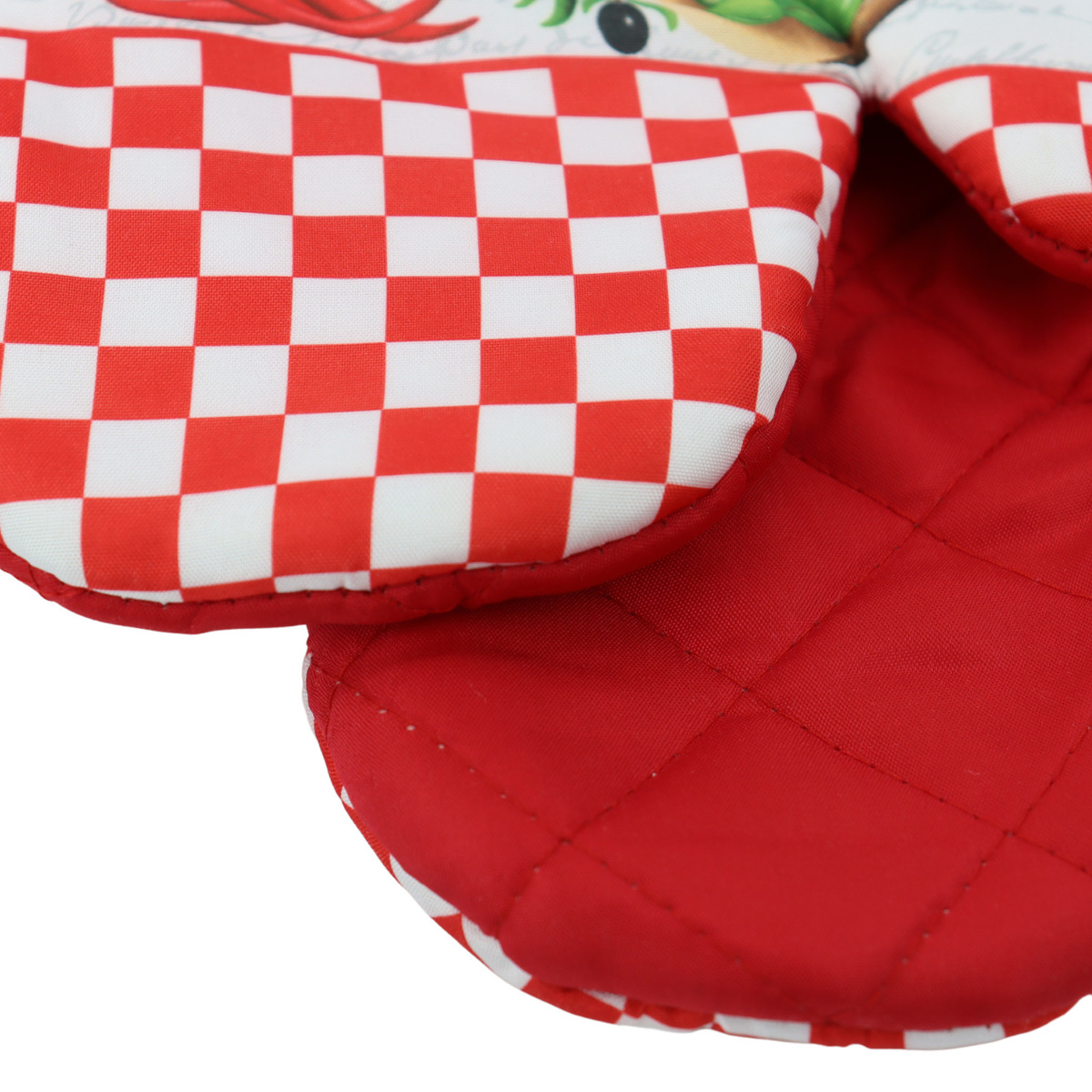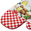 2 kuchynské rukavice s magnetom, pravá a ľavá. Materiál: 100% polyester. Veľkosť 16x27 cm. Teplota prania 30 °C.