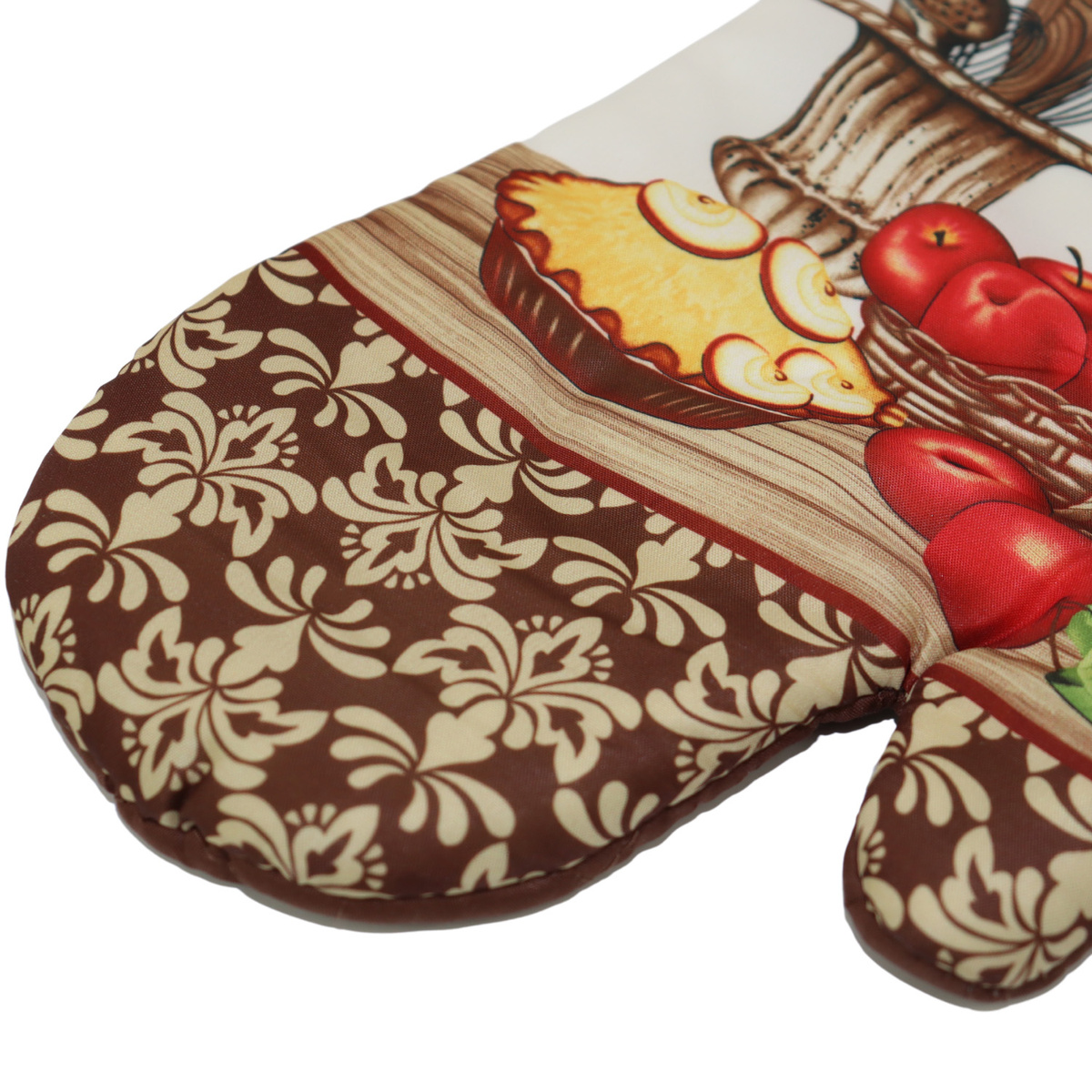 2 kuchynské rukavice s magnetom, pravá a ľavá. Materiál: 100% polyester. Veľkosť 16x27 cm. Teplota prania 30 °C.